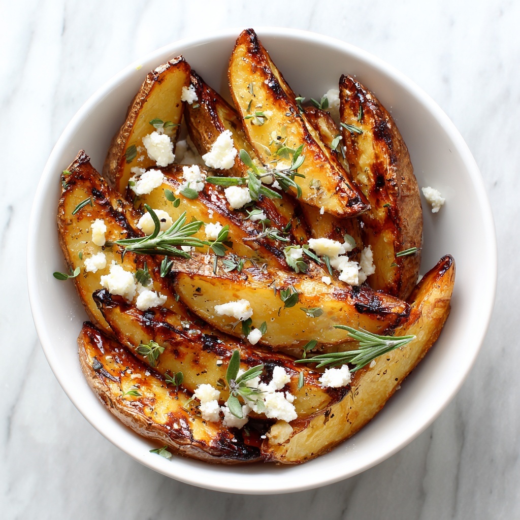 Serve these potatoes right out of a rustic cast-iron skillet for a cozy presentation. Or layer them in a shallow casserole dish and scatter the feta evenly on top for a more formal plating that impresses guests with simplicity and elegance.