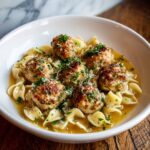 These Baked Sage Chicken Meatballs with Parmesan Orzo offer a comforting and flavorful meal that’s both hearty and creamy. The tender chicken meatballs are infused with aromatic sage and baked to perfection, pairing beautifully with orzo pasta cooked in a rich Parmesan cream sauce. Ideal for a family dinner or a cozy weeknight meal.