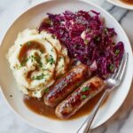 The classic accompaniments for Beef Rouladen with Red Wine Gravy Recipe are spaetzle, German red cabbage, or creamy mashed potatoes. These sides balance the intense flavors of the beef and gravy while providing comforting textures that complete the meal perfectly. Egg noodles or buttered potatoes also work brilliantly if you want a slight twist.