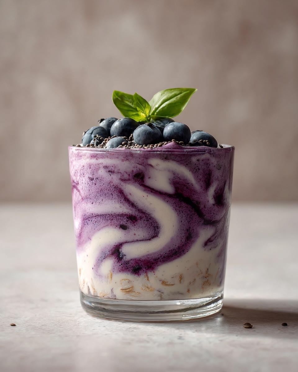 For a special occasion or brunch, serve the overnight oats in small glass jars layered with extra blueberries and a dollop of whipped cream or mascarpone cheese on top. Another fun idea is to create a parfait style by layering oats, fruit, and crumble for a visually stunning breakfast that tastes as good as it looks.