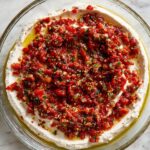 Spread the whipped cheese base evenly over your favorite serving plate or shallow dish. Then, spoon the marinated tomato mixture gently over the top, creating a colorful and inviting layered appetizer that’s ready to wow your guests.