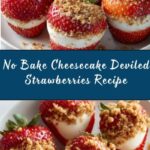 Cheesecake Deviled Strawberries are a delightful no-bake dessert featuring fresh halved strawberries filled with a smooth and fluffy cream cheese filling, lightly sweetened and flavored with vanilla. Topped with optional graham cracker crumbs and fresh mint, these bite-sized treats offer a perfect combination of creamy cheesecake flavor and juicy strawberries, ideal for any occasion.