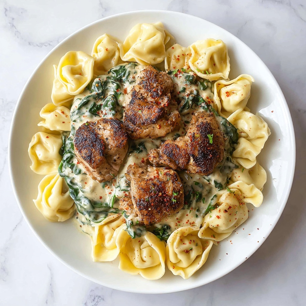 Return the cooked tortellini and chicken to the sauce, then add the baby spinach. Stir everything together gently, cooking for an additional 2 to 3 minutes to allow the spinach to wilt just enough and all the flavors to meld beautifully. If you want to go all out, sprinkle shredded mozzarella on top and let it melt, adding an irresistible gooey cheese layer that’s pure comfort food heaven.