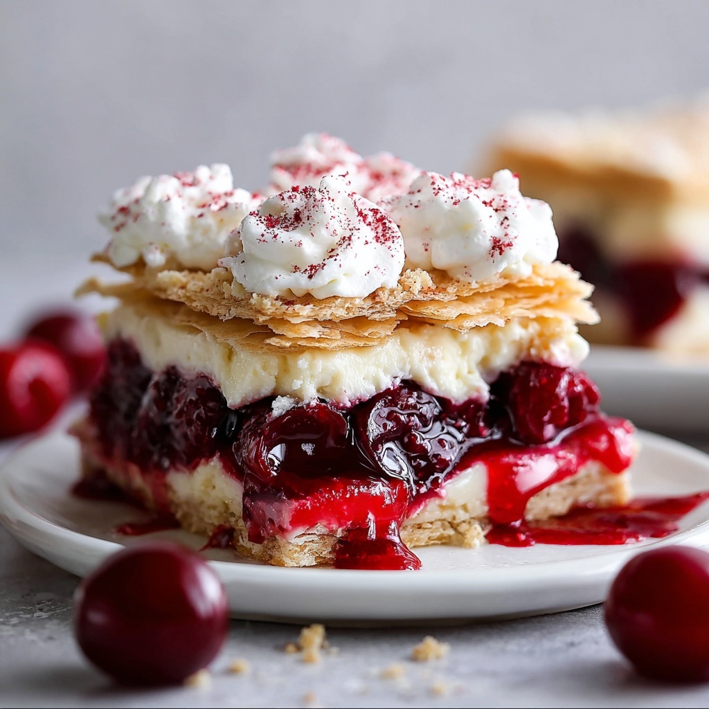These Cherry Pie Bars are a delightful twist on the classic cherry pie, offering a buttery, tender crust layered with sweet cherry pie filling and finished with a smooth vanilla-almond glaze. Perfect for gatherings or a simple dessert, they combine rich flavors and an easy preparation method suitable for bakers of all levels.