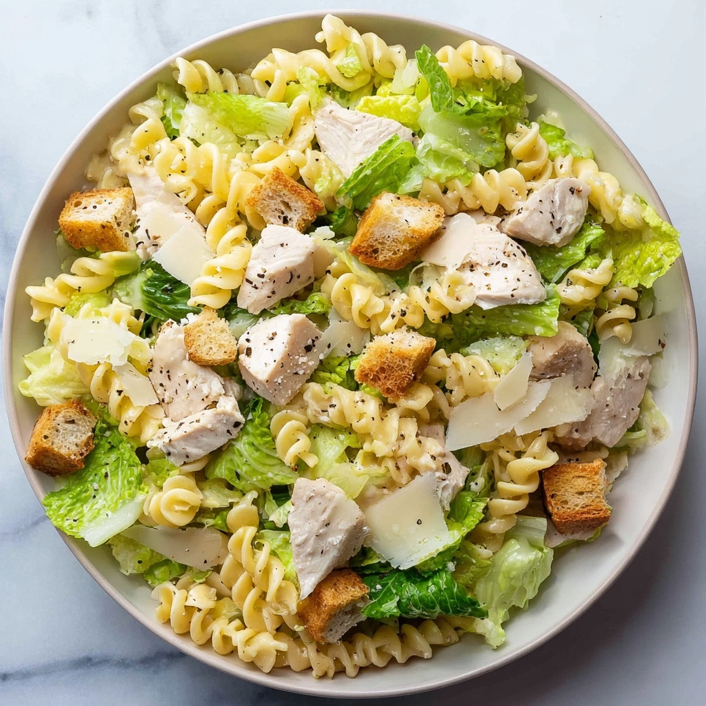 Just before serving, sprinkle the salad with crunchy croutons and a handful of chopped fresh parsley for a final burst of texture and color. This last touch brings contrast and a homemade feel that makes your Chicken Caesar Pasta Salad Recipe feel extra special.