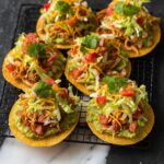 Impress your friends by stacking individual tostadas on a rustic wooden board for a family-style feast. Alternatively, lay out all the components—guacamole, chicken-veggie mix, cheese, and toppings—buffet-style so everyone can customize their tostadas. For a charming twist, cut the tostadas into smaller pieces to serve as an appetizer at your next party.