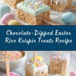These Chocolate-Dipped Easter Rice Krispie Treats are a fun and festive twist on the classic marshmallow cereal treat. Crisp Rice Krispies are combined with melted butter and marshmallows, then shaped and dipped in rich dark and white chocolate before being adorned with colorful sprinkles. Perfect for Easter celebrations or any springtime gathering, these treats combine crunchy and gooey textures with a smooth, chocolaty finish.