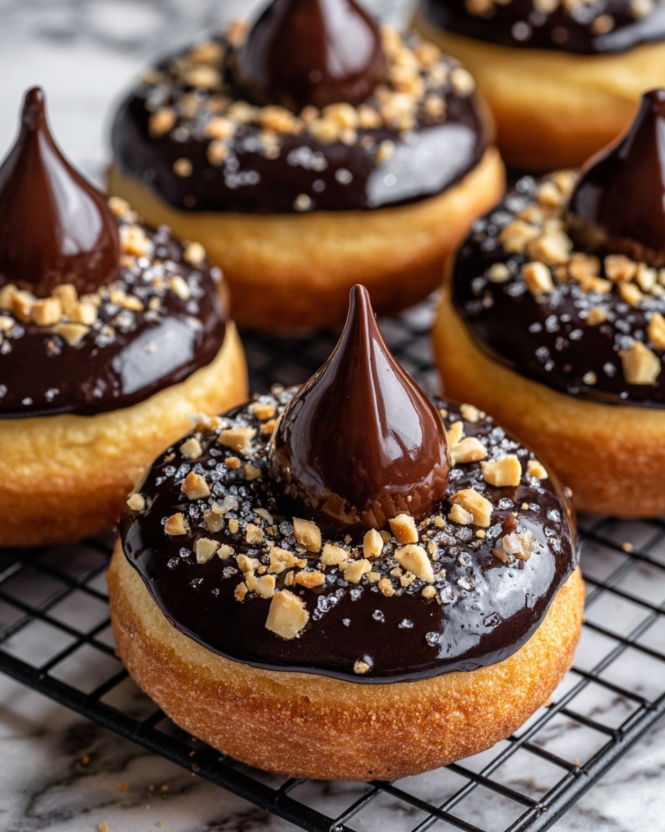 These doughnuts are super versatile when it comes to garnishing. A simple dusting of powdered sugar adds a delicate sweet crunch, or you could dip the tops in melted chocolate and sprinkle chopped hazelnuts for an extra nutty, chocolatey hit. Toasted hazelnut pieces add a delightful crunch and complement the creamy filling perfectly.