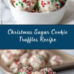 Delicious and festive Christmas Sugar Cookie Truffles made by combining crushed sugar cookies with cream cheese, then coated in smooth white chocolate and decorated with colorful sprinkles. These no-bake truffles are perfect for holiday gatherings or gifting.