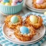Delightful and festive Coconut Macaroons Easter Birds Nests are a perfect treat for spring celebrations. These light, airy, and chewy coconut macaroons are shaped into nests, baked to a delicate golden brown, then topped with melted white chocolate and colorful Cadbury mini eggs to mimic charming bird’s nests. Easy to prepare and sure to impress, these macaroons combine coconut sweetness with a creamy almond twist and a festive chocolate egg garnish.