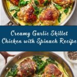 I can’t recommend this Creamy Garlic Skillet Chicken with Spinach Recipe enough if you’re craving a cozy, flavorful meal that feels like a hug on a plate. The thoughtful balance of garlic, wine, fresh spinach, and creamy sauce over tender chicken cutlets makes every bite pure joy. Try it out tonight—you’ll see why it quickly becomes one of those dishes you want to make again and again!