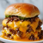 When the timer goes off, your Crockpot Cheeseburgers Recipe is ready to shine! Scoop generous portions onto toasted buns, and don’t forget to add your favorite cheese slices on top for extra melty goodness. A few crunchy pickles complete the classic cheeseburger experience.