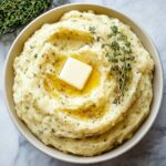 For a fun twist, serve the mashed potatoes in individual ramekins garnished with a drizzle of garlic-infused olive oil or crispy shallots for crunch. Or turn them into loaded mashed potato bowls by topping with cheese, bacon bits, and green onions for a cozy, customizable treat.