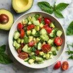 A fresh and vibrant Cucumber Tomato Avocado Salad that combines crisp cucumbers, juicy cherry tomatoes, creamy avocados, and zesty red onion tossed in a light lemon and olive oil dressing. This quick and easy salad is perfect for a healthy side dish or light meal, ready in just 15 minutes.