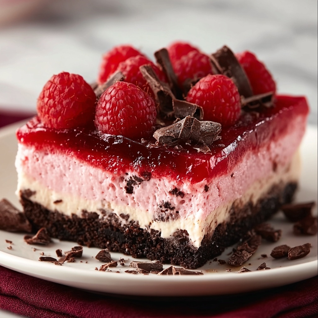 This Dark Chocolate Raspberry Cheesecake combines a rich, velvety dark chocolate cheesecake base with a vibrant raspberry swirl, all set atop a crunchy chocolate cookie crust. The creamy filling is perfectly balanced with the tartness of fresh raspberries, making it an indulgent dessert that’s ideal for special occasions or any chocolate-raspberry craving.