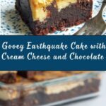 The name Earthquake Cake comes from the way the cake’s surface cracks and breaks apart during baking, revealing swirls and pockets of cream cheese that look like earthquake fault lines. It’s a fun and descriptive way to capture this cake’s unique appearance and texture.