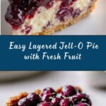 - Layer pie: Pour half of the gelatin mixture over the chilled crust and refrigerate for 30 minutes to allow it to set partially. Add a layer of fresh sliced strawberries and blueberries on top. Then pour the remaining gelatin mixture, using different Jell-O flavors for additional layers if desired, alternating with more fresh fruit.