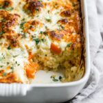 This casserole pairs beautifully with a crisp green salad dressed lightly in lemon vinaigrette or a side of roasted seasonal vegetables like broccoli or carrots, providing refreshing balance and a variety of textures on the plate.
