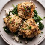 To reheat, gently warm the chicken in the oven at 325°F (160°C) until it’s heated through to maintain tenderness and melt the feta topping slightly. Avoid microwaving if possible, as it can dry out the chicken and alter the texture of the spinach and cheese.