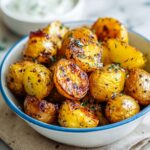 Place the potatoes in the preheated oven and roast for 35-40 minutes. Make sure to flip or toss them halfway through cooking so they brown evenly on all sides. When the potatoes are golden brown and crispy on the outside but tender inside, they’re ready to come out.