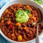 Reheat the chili slowly over medium-low heat, stirring occasionally to prevent sticking and to warm it evenly. You may want to add a splash of vegetable broth or water if it thickens too much. It’s just as comforting and tasty the next day or even after freezing.