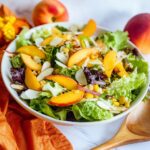 If peaches are not in season, nectarines or even ripe plums can work well as substitutes, providing similar sweetness and juiciness to your salad.