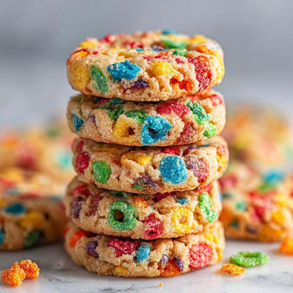 Serve these cookies with a cold glass of milk or a scoop of vanilla ice cream for an indulgent twist. They also pair wonderfully with fruity beverages like a smoothie or lemonade to complement the fruity notes in the cereal.