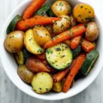 This Garlic Herb Roasted Potatoes, Carrots, and Zucchini recipe offers a delicious medley of tender, herb-infused vegetables. The combination of fresh thyme, rosemary, and garlic perfectly complements the natural sweetness of the carrots and zucchini alongside crispy roasted baby potatoes. This simple yet flavorful dish is an excellent side for any meal, simply roasted to perfection in the oven.
