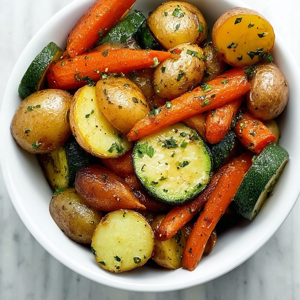 To take your Garlic Herb Roasted Potatoes, Carrots, and Zucchini Recipe from great to memorable, sprinkle some freshly chopped parsley or a few shavings of parmesan cheese on top before serving. A light drizzle of lemon juice or a sprinkle of chili flakes can also add a fresh kick and brightness that contrasts beautifully with the roasted richness.