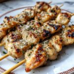 These Garlic Parmesan Chicken Skewers are a delicious and easy-to-make dish featuring tender chicken cubes marinated in a flavorful blend of garlic, Parmesan cheese, lemon juice, and Italian seasoning. Grilled to perfection with a slight char, they make a perfect meal for gatherings or a tasty weeknight dinner, served with fresh herbs and your favorite dipping sauces.