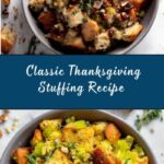This stuffing pairs brilliantly with classic Thanksgiving staples like roasted turkey, mashed potatoes, and cranberry sauce. The savory herbs and buttery bread complement these dishes perfectly, rounding out the meal with satisfying, homey flavors.