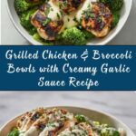 A quick and flavorful recipe for Grilled Chicken & Broccoli Bowls featuring tender grilled chicken breasts, roasted broccoli florets, and cooked grains, all topped with a rich and creamy garlic sauce. Perfect for a healthy, balanced meal in just 30 minutes.
