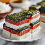 Rolling the musubi tightly and serving it soon after assembly helps keep the nori crisp. Letting it rest seam-side down firms up the shape, and storing them wrapped properly slows moisture absorption.
