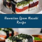 Hawaiian Spam Musubi is a popular snack or lunch made with flavorful pan-fried Spam, seasoned sushi rice, and nori seaweed. This easy-to-make recipe combines slightly sweetened vinegar rice with salty, crispy Spam slices wrapped in seaweed, creating a satisfying bite-sized treat reminiscent of traditional Japanese onigiri but with a distinct Hawaiian twist.
