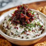 This dip pairs beautifully with an assortment of dippers. Choose crispy crackers or toasted crostini for a crunchy bite, or opt for fresh-cut veggies like crisp cucumbers, sweet bell peppers, and crunchy carrot sticks to keep things light and healthy. They add a delightful texture contrast and vibrant color to your spread.