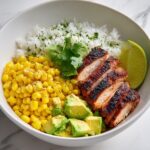 - Assemble the Bowls: Divide the cooked rice evenly among four serving bowls. Top each portion with sliced or diced grilled chicken, a generous spoonful of avocado corn salsa, and sprinkle with crumbled queso fresco or cotija cheese. Garnish with extra cilantro and serve with lime wedges alongside for squeezing over the bowls.
