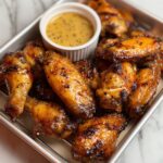 These wings carry a gentle peppery kick from the cracked black pepper, but they’re not spicy hot. If you want more heat, you can add a pinch of cayenne pepper to the seasoning or glaze.