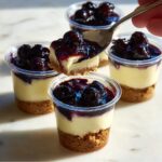 These Juicy Mini Lemon Blueberry Cheesecakes offer a perfect balance of tangy lemon and sweet blueberries in a creamy, smooth cheesecake nestled on a buttery biscuit crust. Individually portioned and topped with a luscious homemade blueberry compote, these delightful treats are ideal for any occasion where a refreshing, elegant dessert is desired.