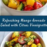 A refreshing and vibrant Mango, Avocado, and Tomato Salad with a zesty citrus dressing, perfect for a light meal or side dish that combines creamy avocado, sweet mango, and juicy tomatoes with fresh cilantro and a lemony olive oil dressing.