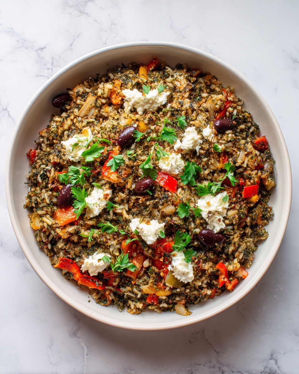 Adding a few thoughtful garnishes can elevate your Mediterranean Crispy Rice Salad Recipe to restaurant quality. Sprinkle extra chopped fresh herbs like parsley or mint on top and scatter a bit more crumbled feta for creaminess. A few lemon wedges on the side not only add color but let your guests add a fresh squeeze of brightness right before eating.