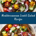 A refreshing and healthy Mediterranean Lentil Salad combining tender cooked lentils with fresh vegetables, Kalamata olives, and tangy feta cheese, dressed in a zesty lemon-oregano vinaigrette. This quick and easy salad is perfect as a light lunch or a flavorful side dish.