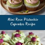 Rose water is a signature ingredient in this Mini Rose Pistachio Cupcakes Recipe because it imparts a distinctive floral aroma. However, if you’re not a fan, you can omit it or substitute with a small amount of vanilla or orange blossom water for a different but pleasant twist.