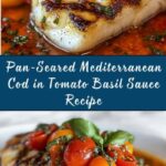 This Pan-Seared Mediterranean Cod in Tomato Basil Sauce is a flavorful and healthy seafood main course featuring tender cod fillets seared to golden perfection and simmered in a vibrant tomato basil sauce infused with garlic, onion, and Mediterranean herbs. Perfectly balanced with a hint of crushed red pepper flakes and fresh basil, this dish pairs beautifully with rice, couscous, quinoa, or crusty bread for a satisfying meal.
