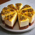 - Garnish and Serve: Just before serving, top the cheesecake with fresh passionfruit seeds for an added burst of flavor and attractive presentation.