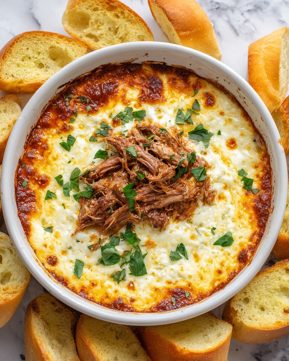 If you’re a fan of rich, hearty flavors packed into a shareable appetizer, the Pot Roast Beef Philly Cheese Steak Dip Recipe will quickly become one of your all-time favorites. This cozy, melty dip combines tender shredded pot roast beef with a luscious blend of provolone, mozzarella, and cream cheese, all joined by the sweet aroma of sautéed onions and bell peppers. It’s the ultimate crowd-pleaser, perfect for game days, casual get-togethers, or whenever you crave that classic Philly cheese steak experience in dip form. Trust me, once you try this dip, you’ll be hooked on the perfect balance of savory beef and gooey cheese that brings comfort to a whole new level.