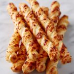 Delicious and crispy Puff Pastry Cheese Straws made with sharp cheddar and Parmesan cheeses, seasoned with garlic powder and paprika. These easy-to-make appetizers are perfect for parties or a savory snack, featuring flaky puff pastry twisted to golden perfection.