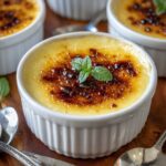 Right before serving, sprinkle an even layer of light brown sugar over each custard. Use a kitchen torch to melt and caramelize the sugar until it forms a golden, brittle crust. If you don’t have a torch, placing ramekins under a broiler for 2 to 3 minutes works as well—just watch carefully so the sugar doesn’t burn.