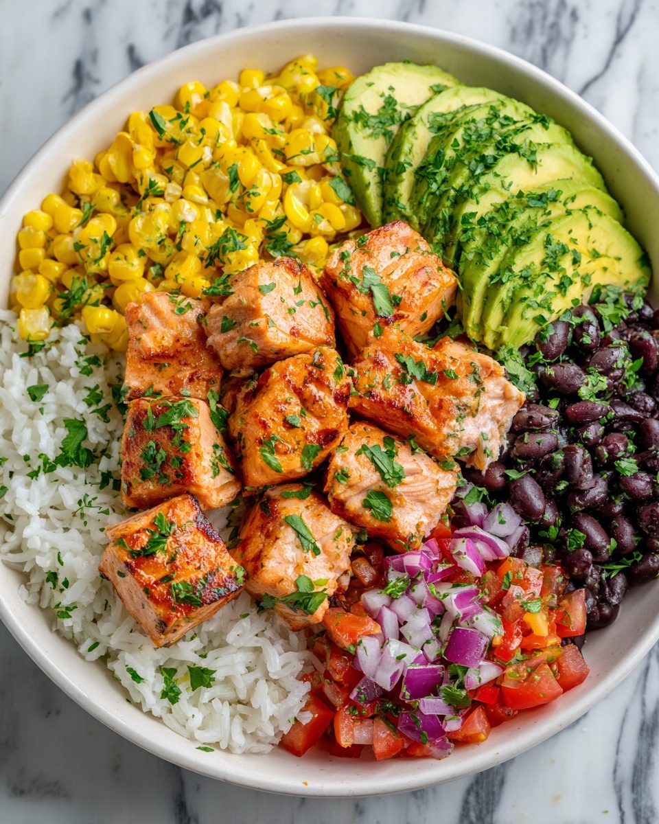 If you are looking for a vibrant, nourishing dish that bursts with flavor and freshness, this Salmon Burrito Bowl Recipe is exactly what you need. It brings together perfectly seasoned, flaky salmon resting atop a bed of hearty brown rice, complemented by colorful veggies like black beans, corn, avocado, and cherry tomatoes. With a tangy, creamy dressing drizzled over the top, this bowl is not only a feast for your taste buds but also a celebration of wholesome ingredients all in one satisfying meal.