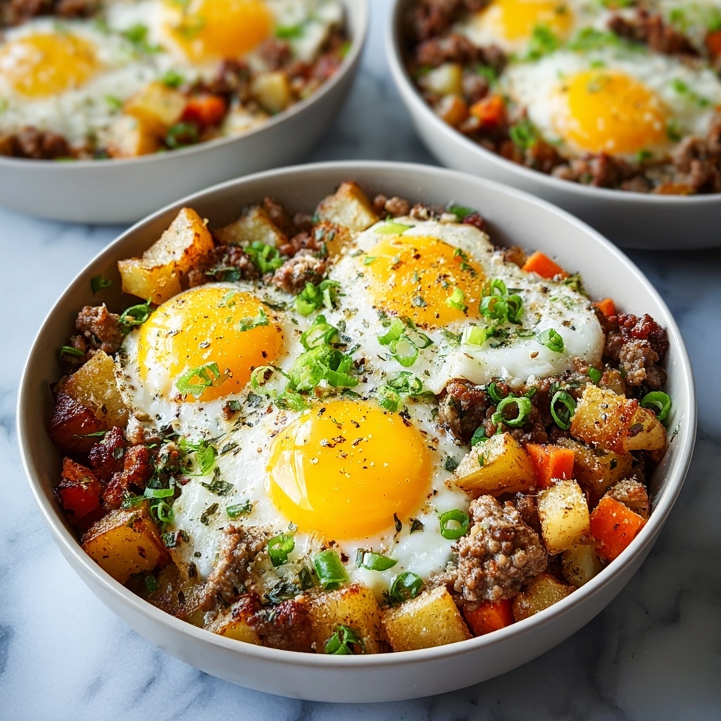This recipe calls for simple, everyday ingredients that come together to create a breakfast bowl bursting with flavor and texture. Each adds its own magic from the savory sausage to the crispy potatoes and creamy eggs.