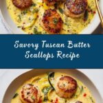Enjoy a rich and flavorful dish of Savory Tuscan Butter Scallops, perfectly seared and cooked in a creamy, aromatic sauce with sun-dried tomatoes, spinach, and Parmesan. Ready in just 25 minutes, this elegant recipe features tender sea scallops simmered in a buttery white wine sauce bursting with classic Tuscan herbs – ideal for a quick yet impressive dinner.